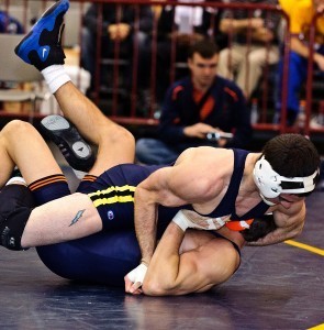 Michigan's Kellen Russell pinned Illinois' Jimmy Kennedy in the semifinals of the Las Vegas Invitational. |